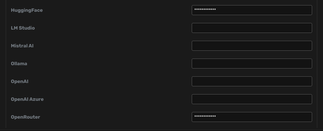 Scroll Down, and Add Openrouter and Huggin Face API keys,