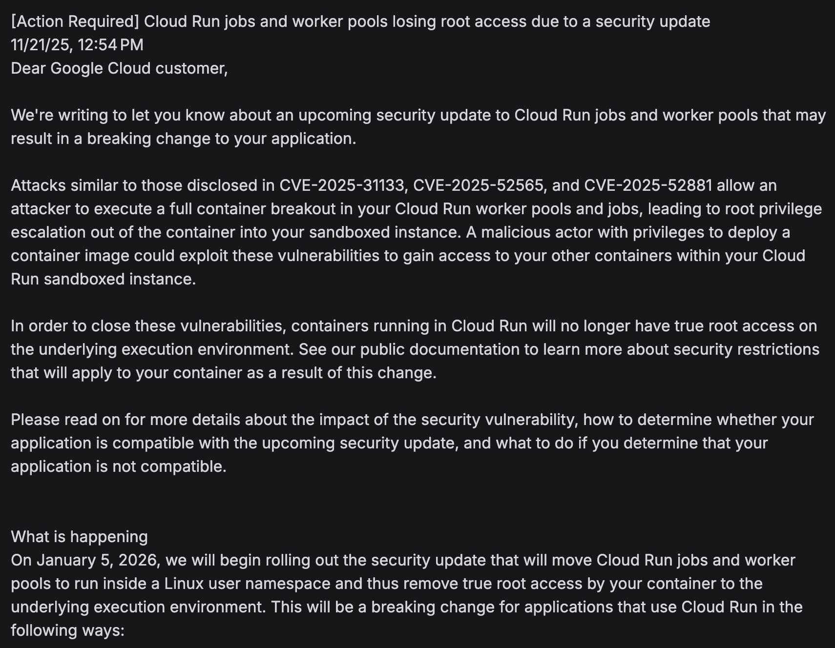 I’m posting the breached that happened to Google, but this is related to runc, this is related to containers.