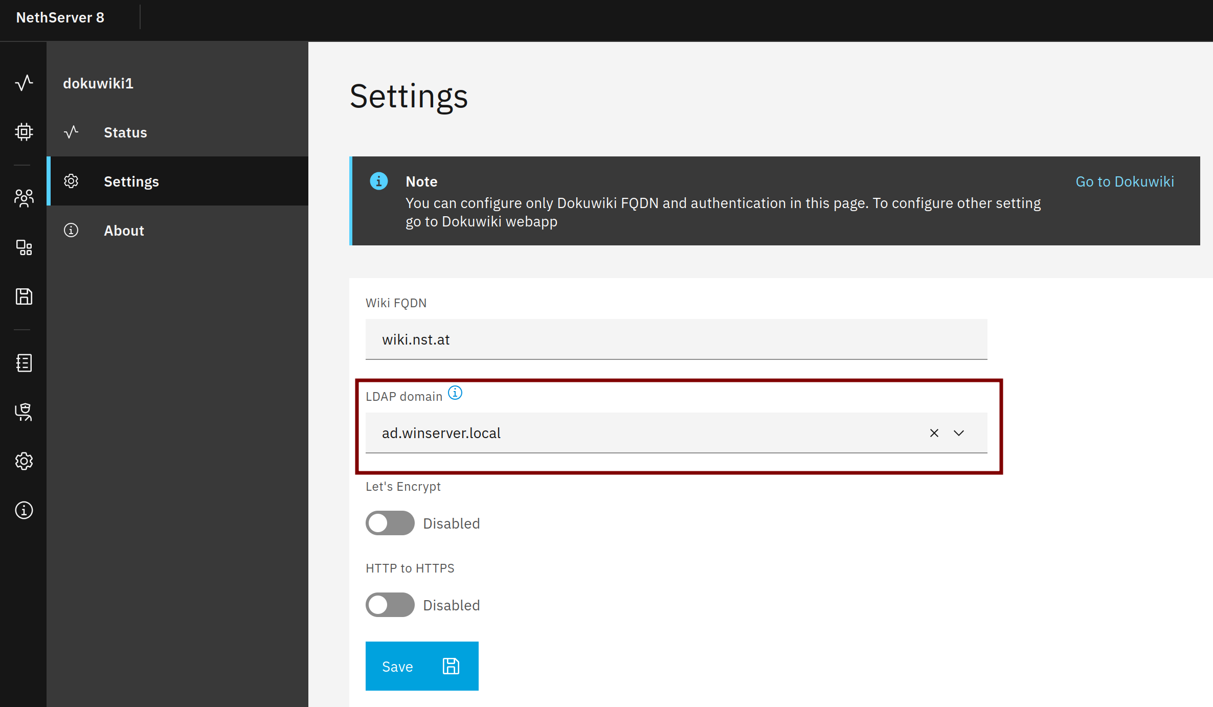Dokuwiki1 node: LDAP domain: