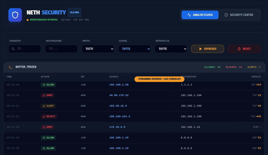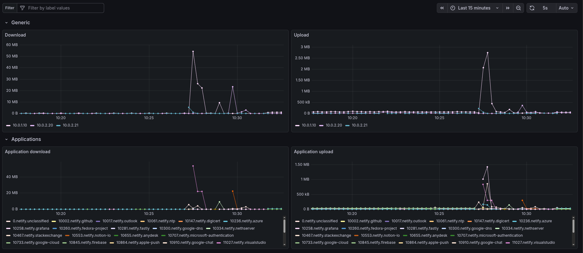 If you want something that tracks everything and it’s already here, you can go over our friends over at Netify, since you can enable NethSecurity to send all the traffic data there to be aggregated and stored. I am mentioning them just cause we use their engine to detect and catalog all the traffic, and their software is really well made.