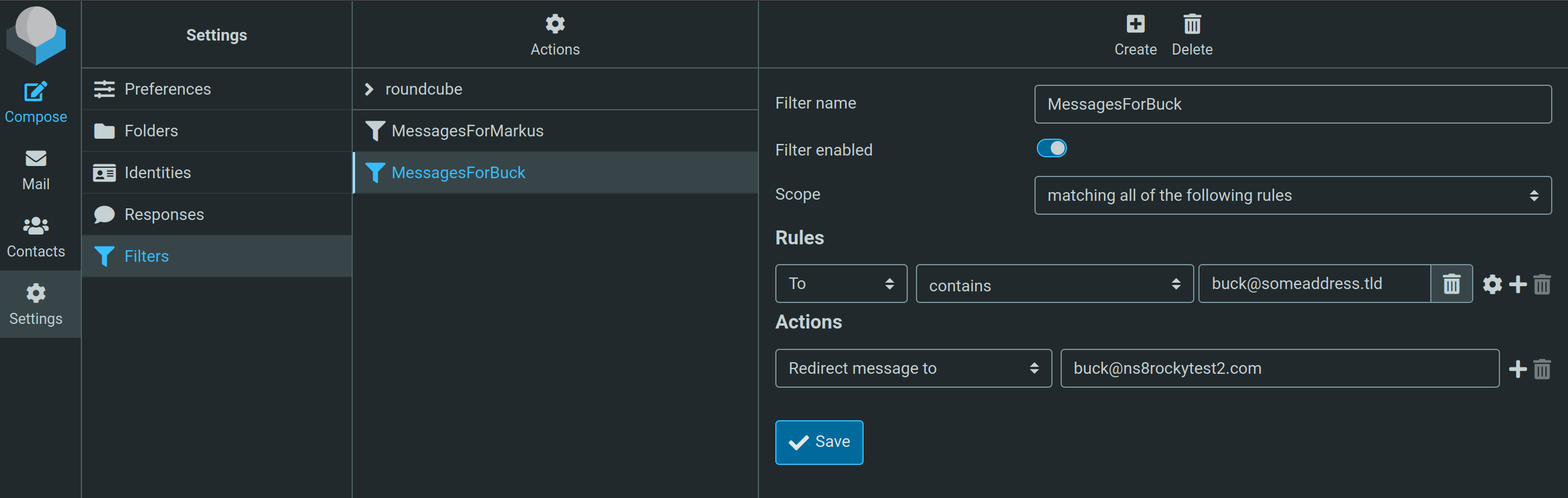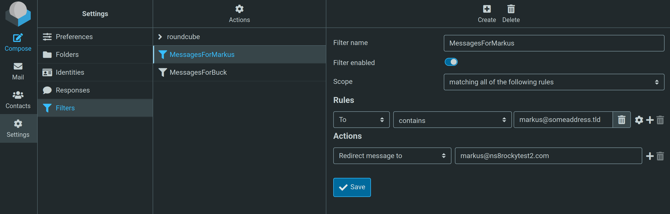 In Roundcube I created sieve filters for the users, here for example for user Markus: