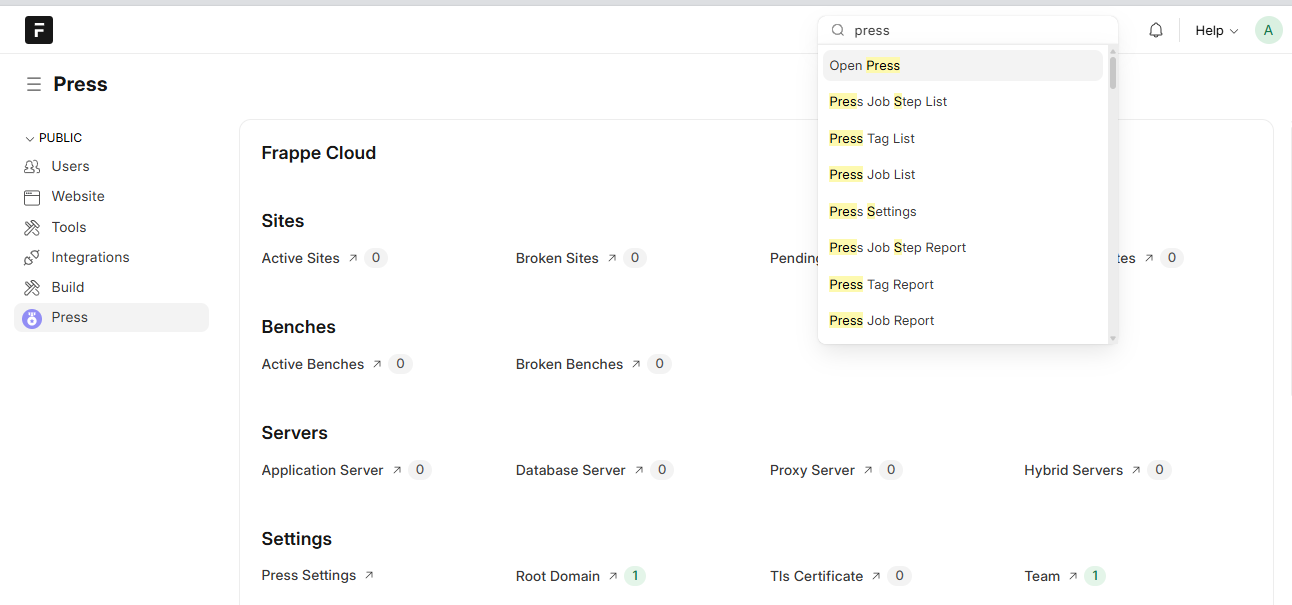 We are Happy to Announce that we have an Initial Version of Frappe Press frappe/press: Full service cloud hosting for the Frappe stack - powers Frappe Cloud