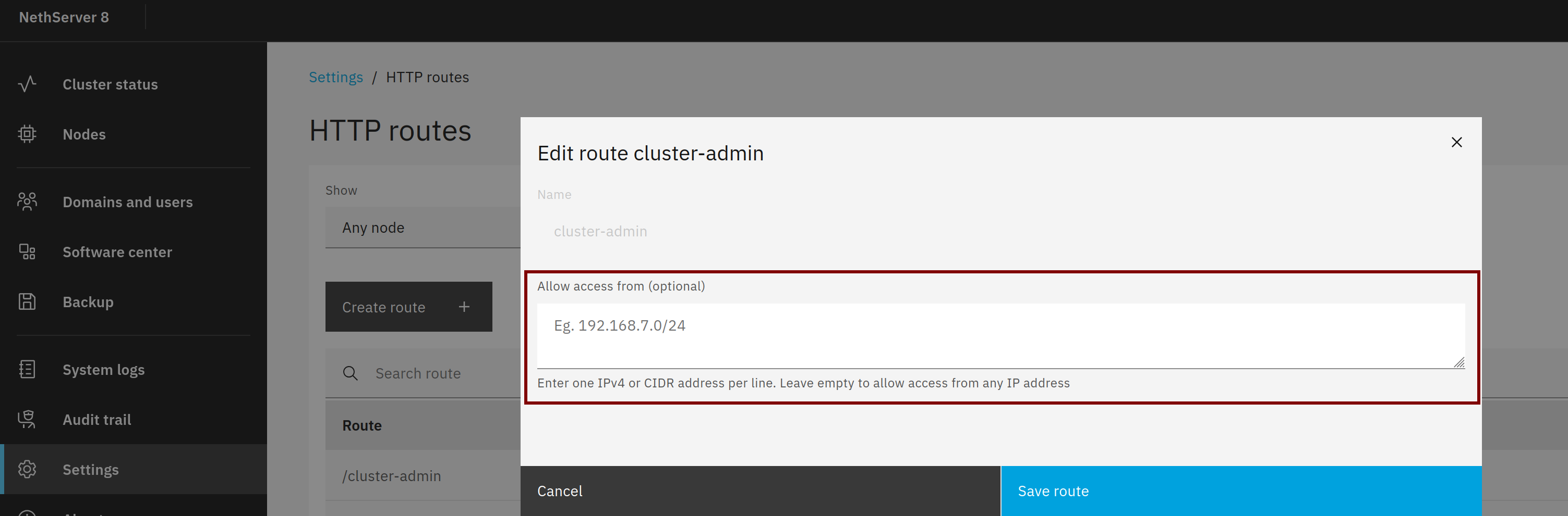 However, it is giving me a headache that the administration page of NS 8 is also accessible via the Internet when I open port 80 or 443. With NS 7, access was regulated via port 980 or port 9090 (Cockpit). Is there a similar option for NS 8 without having to make major changes to the existing infrastructure?