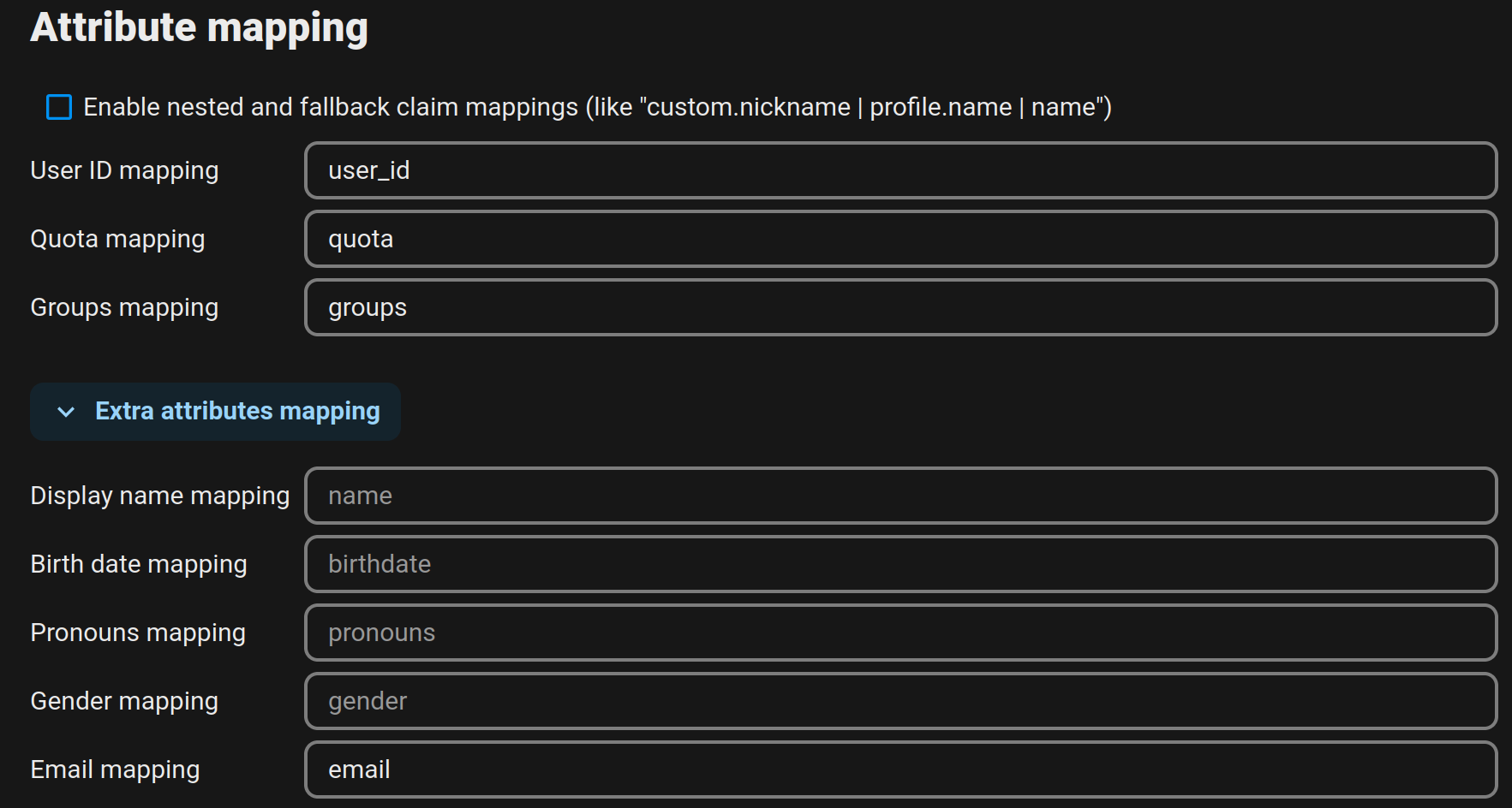 To avoid a hashed Federated Cloud ID, deselect “Use unique user ID” and use user_id for the User ID mapping.