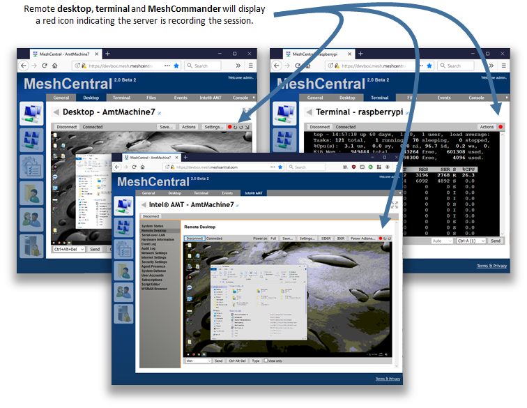 - https://www.reddit.com/r/MeshCentral/comments/e2h8rf/operation_of_session_recording/