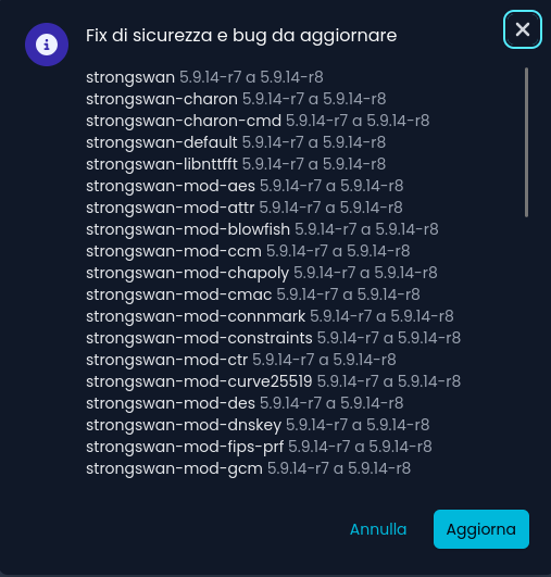 It’s strange, because I have two different nethsecurity devices on two different (and unrelated) networks. On the first one, yesterday I was able to update to version 8.7.0 without any problems, and today to 8.7.1.