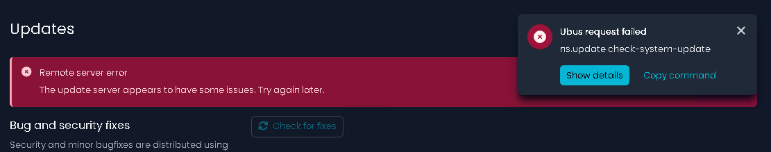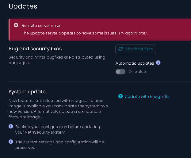Since this morning, my beloved NethSecurity firewall has been showing me a friendly notice: “Update server is under maintenance. Please try again later.”