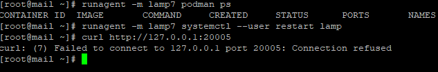 [root@mail ~]# runagent -m lamp7 podman exec -ti