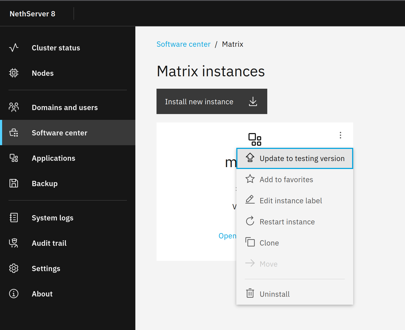 api-cli run update-module --data '{"module_url":"ghcr.io/nethserver/matrix:0.0.3-dev.2","instances":["matrix1"]}'
