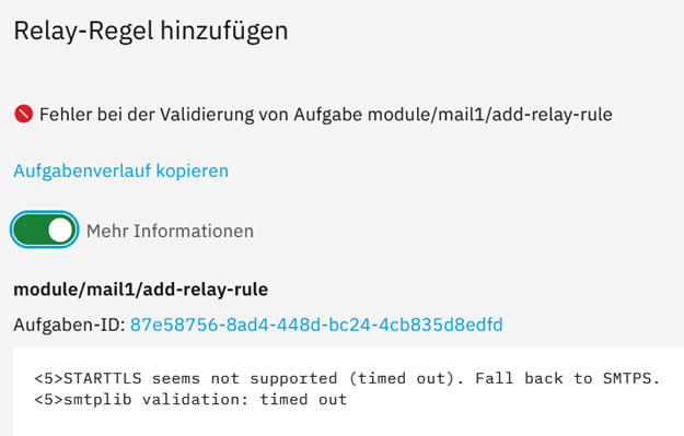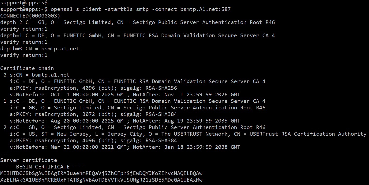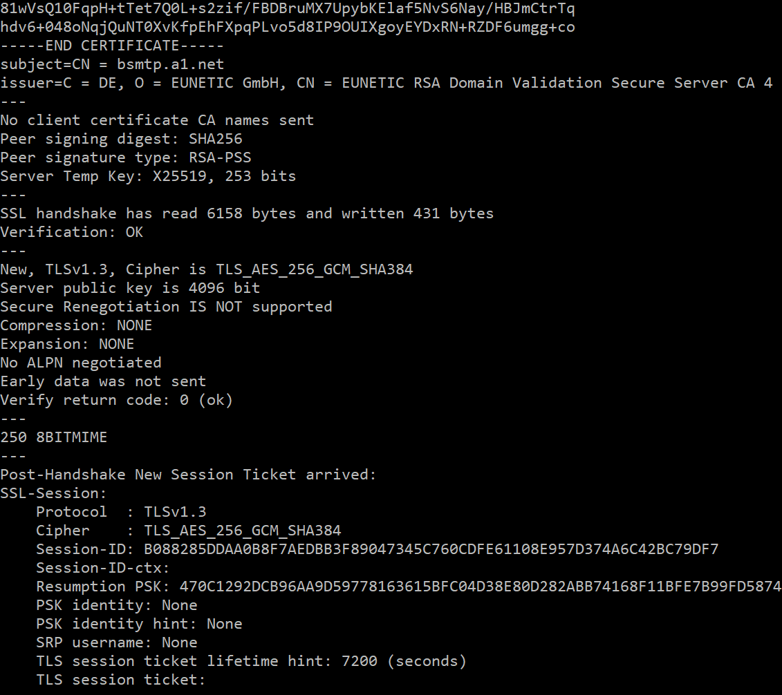 I could reproduce the issue. It’s maybe because secure renegotiation isn’t supported by the SMTP server and the fallback to SMTPS doesn’t work on that port.
