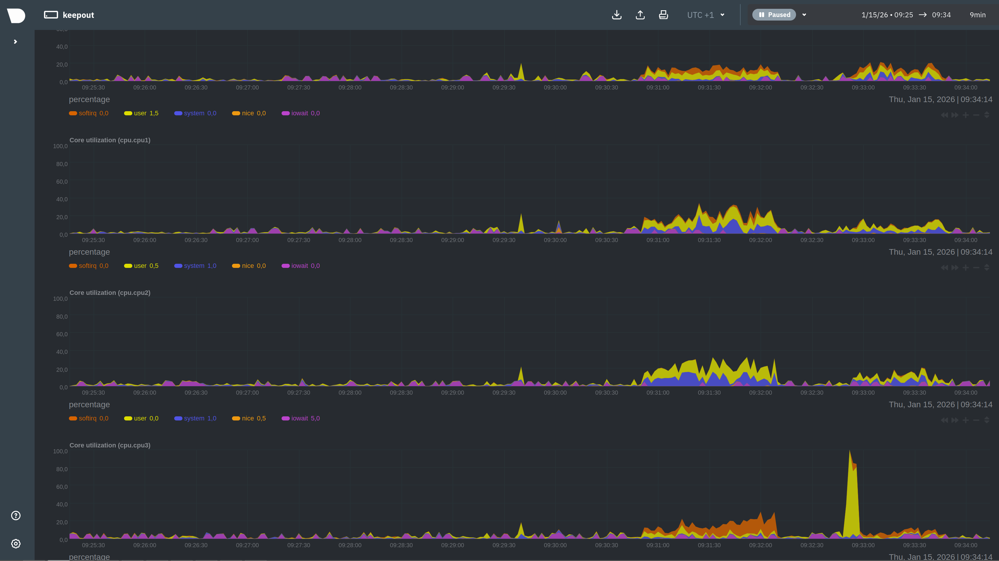 I can’t reproduce, here’s the netdata stats when downloading a big file. Snort is set to balanced. The 4 cores of the Intel N100 CPU are working: