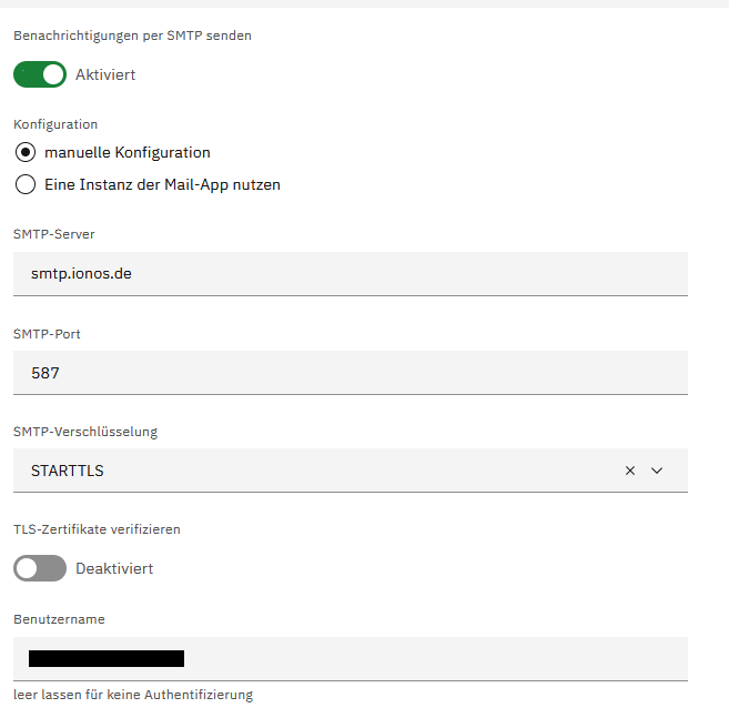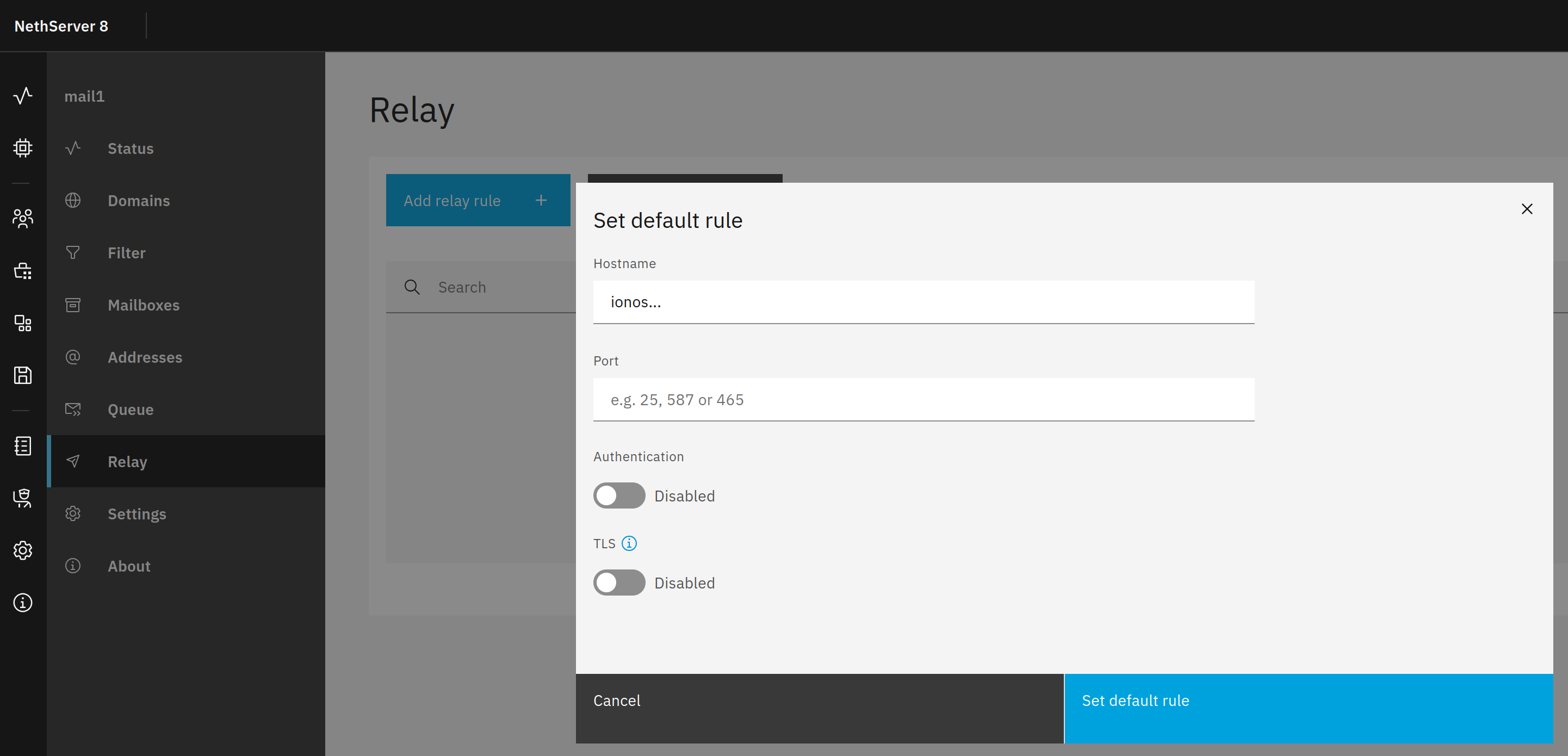 If “Use Mail application” is set, you may need to set the ionos smarthost (relay) in the mail app, see Mail — NS8 documentation