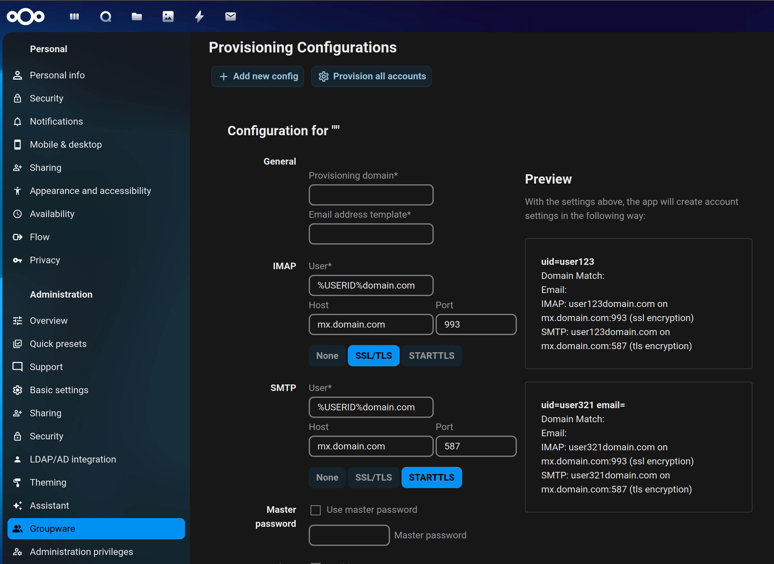 For example if the NC FQDN is nextcloud.domain.tld the mail domain is set to domain.tld.
