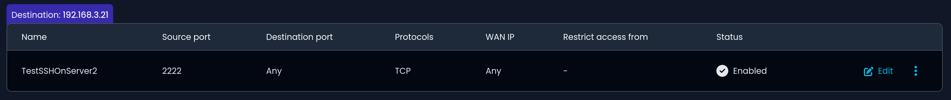 The server here worked so that the WAN and LAN interfaces were organized in separate VLANs, but both are connected to the router and in principle have access to the internet. The difference is that the port forwarding is set to the WAN interface. I need a temporary solution, so I have port forwarding to the LAN port, but I can’t access the LAN port from the internet with ssh. SSH is enabled on the Green (LAN) port.