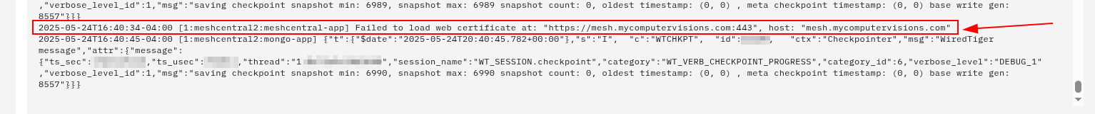 I went into NS8 loki and did a search under APP > MeshCentral - Node1 > Search.