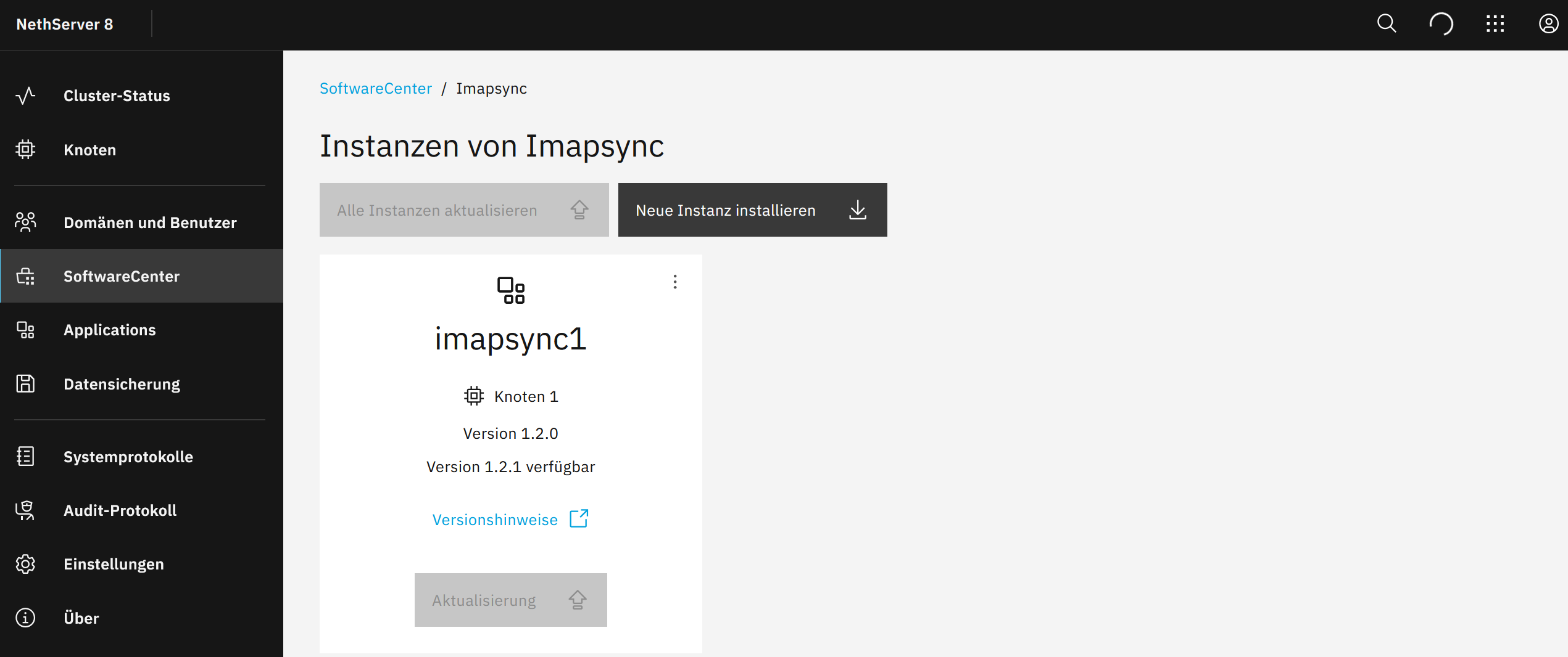 I have a problem with one of my nethserver 8 installations, the performance of the webinterface is very poor. Nethserver 8 is installed on debian 12 under Proxmox and has 16GB or RAM and 40 Cores, just for testing but the webinterface reacts very slow. At the moment I am not able to update the apps, it just looks like this for 30min: