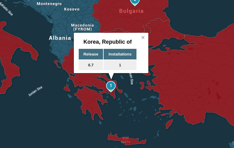 This is a little strange but I think that the reason could be an invalid coordinate address. Maybe the Google’s maps API not returns the correct coordinate. In fact, if you inspect the map near the Greece you can find a sinister Korea, Republic of.