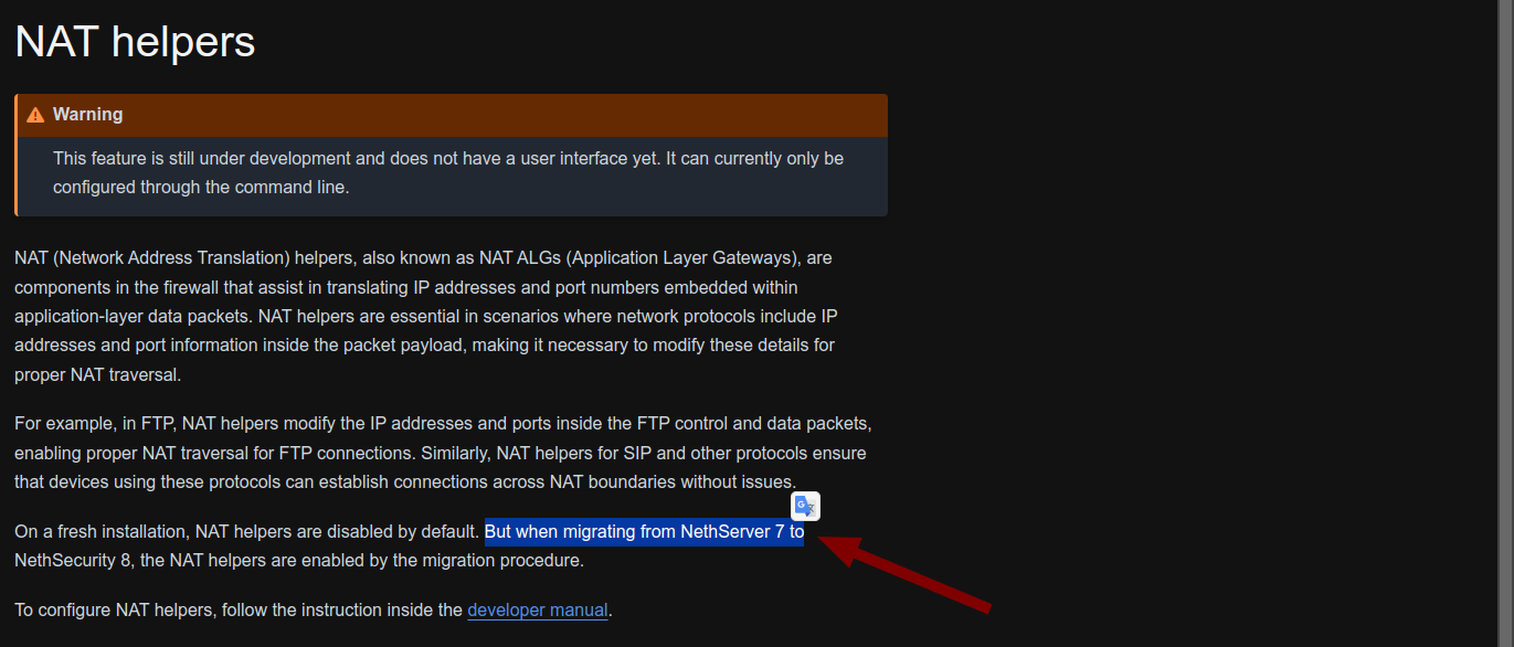 It meens that nat helpers becomes enabled only if i do migration in place, in my case with export configuration and upload to nethsecurity is still disabled? how can i check that from CLI?