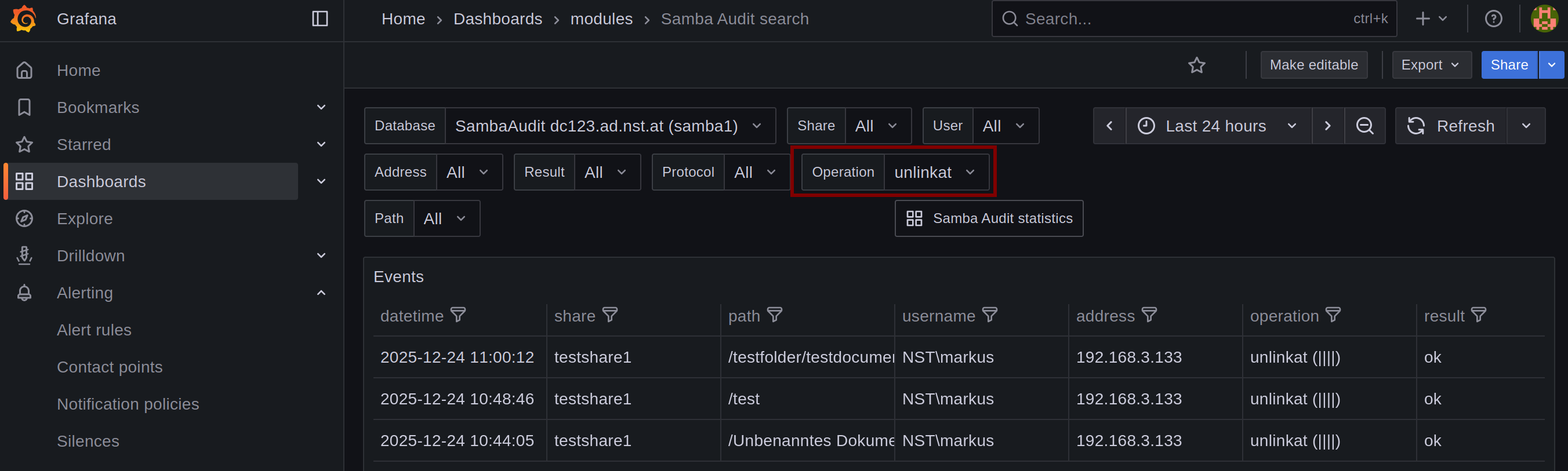 Hi everyone! Here I am again. I’ve been trying for weeks to configure Audit Logging in Samba. I enabled Audit Logging on the desired shared folder, enabled Grafana, and went to Samba Audit search, but the log is quite confusing.