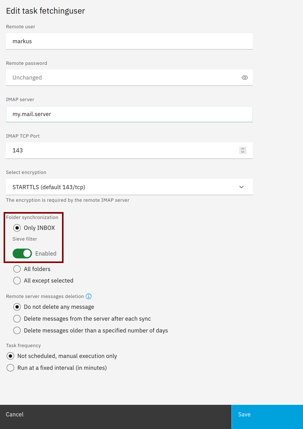 Now the mails from the mailservers “markus” mailbox are synced to the public mail folder publicmailbox1.