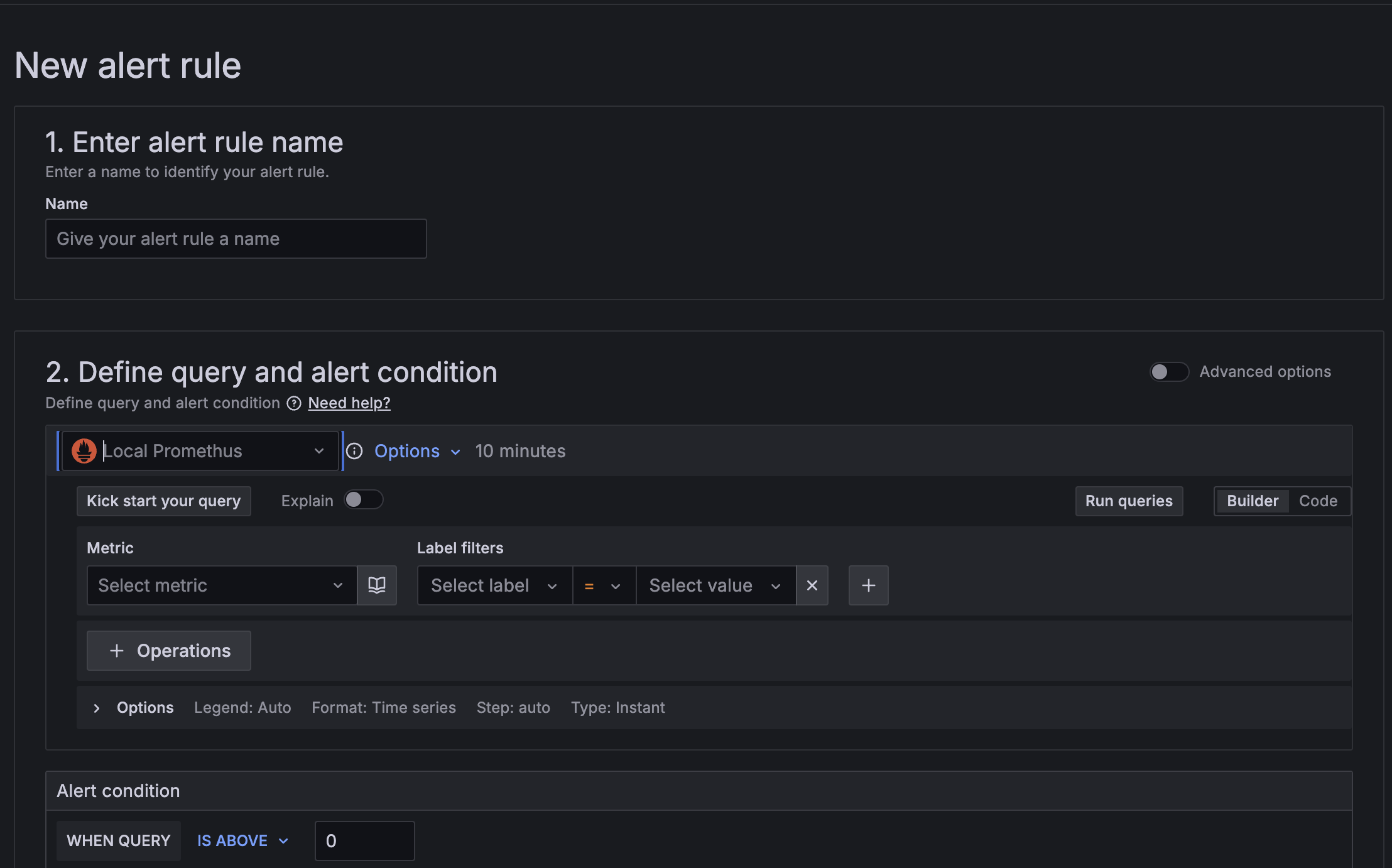 Could somebody show or create an alert for local storage (or any destination) capacity and share the prcedure (or can alerts/filters/dashboards be exorted/imported?) please?