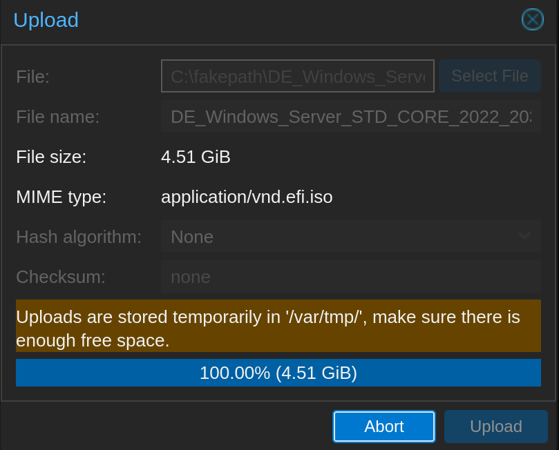 I tried to reproduce the issue with my proxmox cluster and files bigger than 4GB can’t be uploaded through the UI. Uploading the same ISO file without traefik proxy in between works.